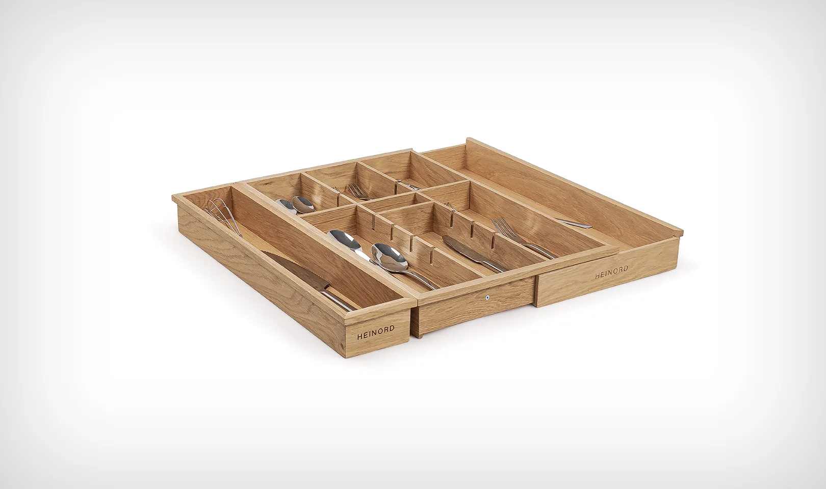Jest wiele organizerów do szuflad kuchennych, ale naturalne, lite, dębowe drewno jest unikalnym materiałem w tym segmencie.