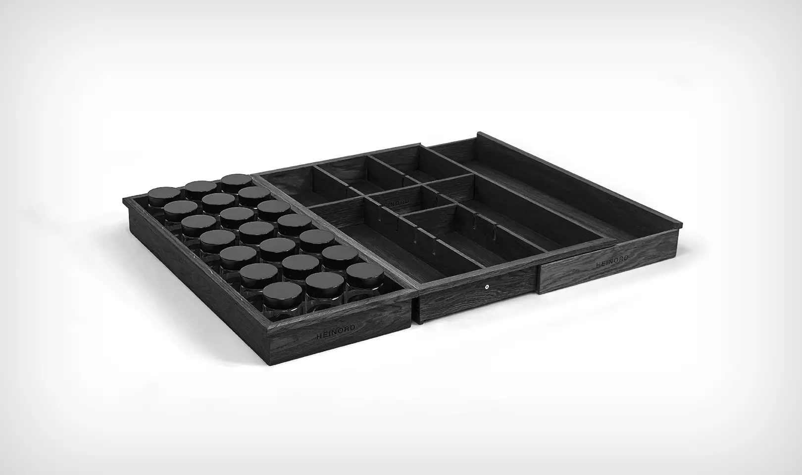Jest wiele organizerów do szuflad kuchennych, ale naturalne, lite, dębowe drewno jest unikalnym materiałem w tym segmencie.